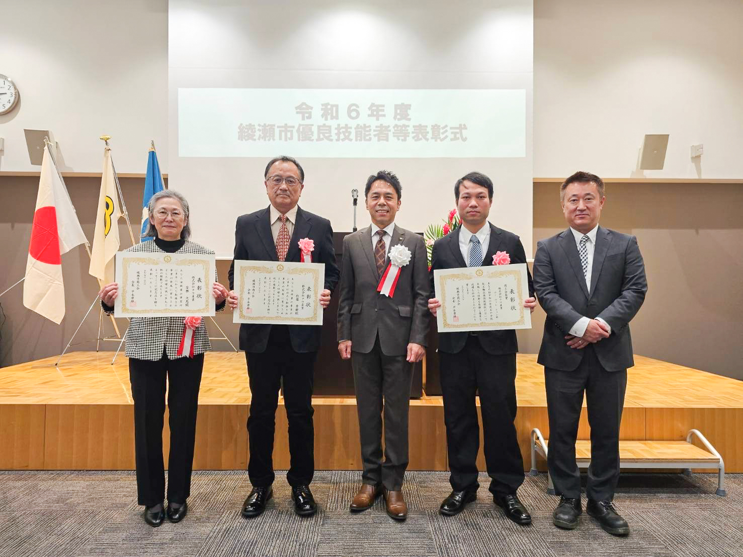 2024年11月6日に綾瀬市商工会で優良技能者等表彰式が行われ、弊社から3名が表彰されました。
